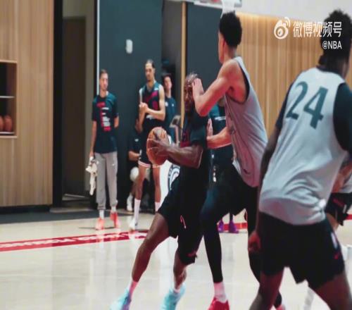 莱昂纳德&哈登&保罗&比尔&祖巴茨合练小卡强硬上篮打进